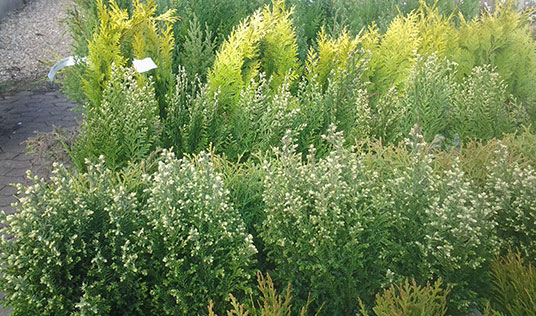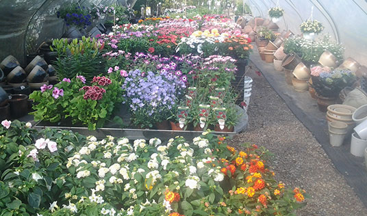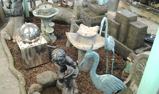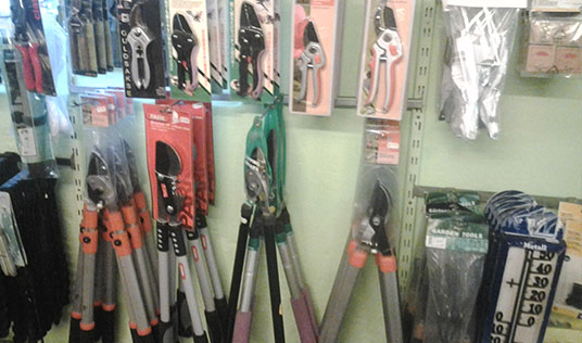 Havekrukker ca. 500 stk. på lager, springvand, havesten, brugskunst, olielamper, pynteting, havefigurer, espalier, haveredskaber, opbinding, frø, gødning, jord, værnemidler, kirkegårdsbinderi samt fyrværkeri.